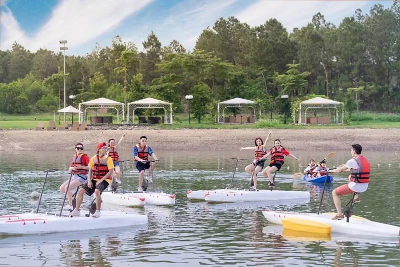 Nếu thích khung cảnh xanh tươi nơi đây, khách du lịch Đại Lải có thể thuê thuyền đi một vòng và lướt sóng. Ở ngay lòng hồ cũng có một số dịch vụ khác để bạn trải nghiệm.